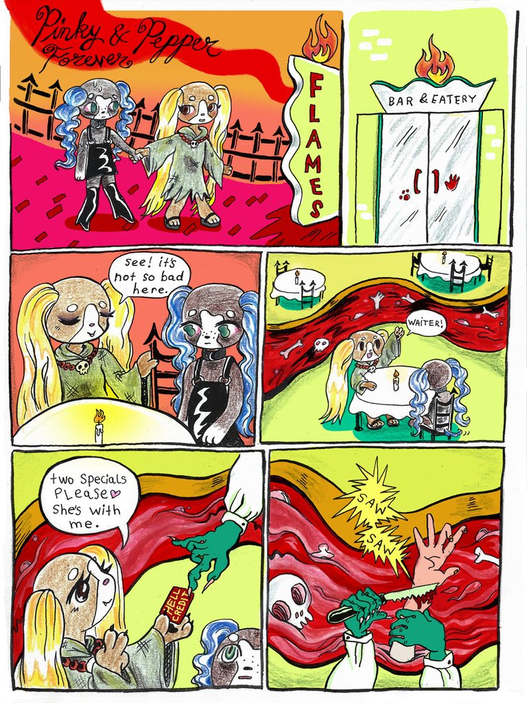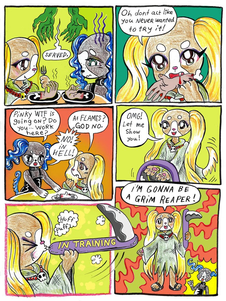 After Pinky’s lethal performance art piece, her devoted girlfriend Pepper follows her into death, only to find that in Hell, Pinky is… thriving?!