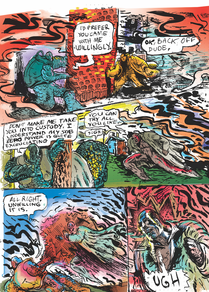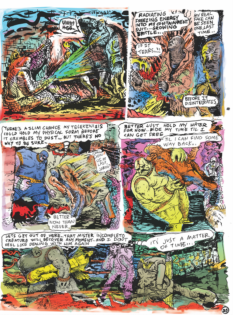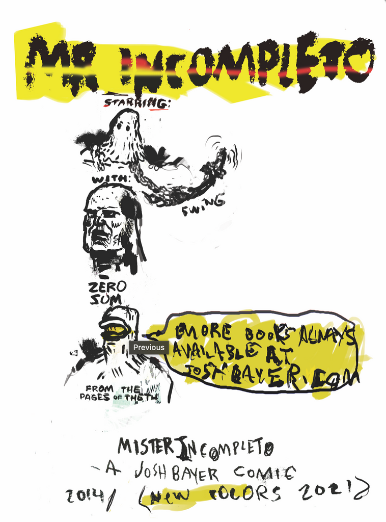 Bayer pays tribute to weird 1980s Marvel comics he remembers reading in his childhood. This book is intended as a companion piece to Theth or can be read on its own. 64 pages, including pin ups from William Test, Hyena Hell, Heather Loase, & Pat Aulisio.
