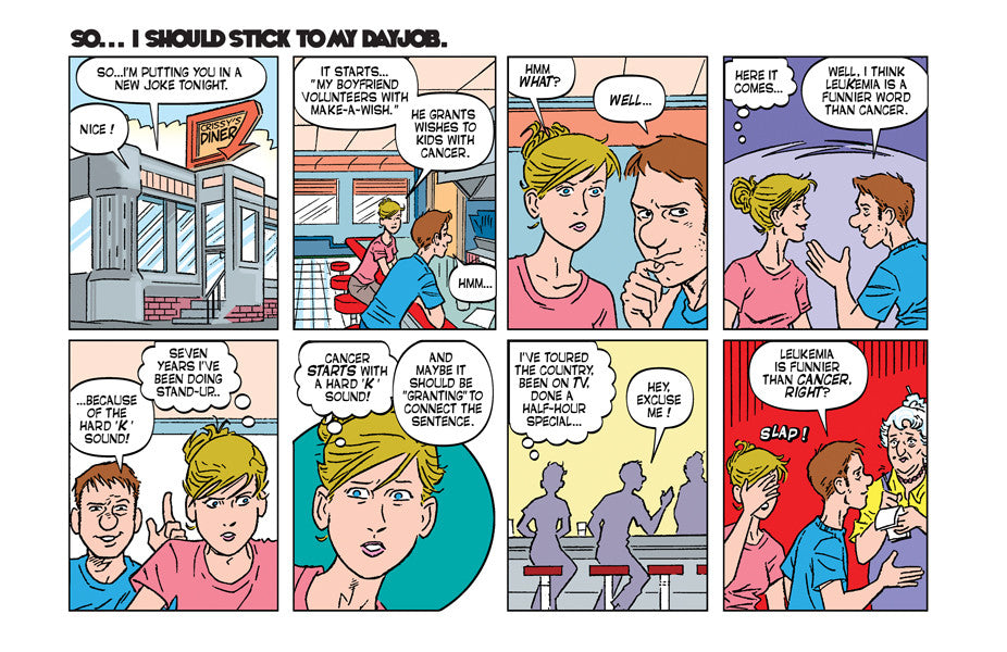 Jonathan Baylis’s anthology of funny, upbeat, true stories. Although all stories are penned by Baylis, in the Harvey Pekar tradition, each is drawn by a different artist.