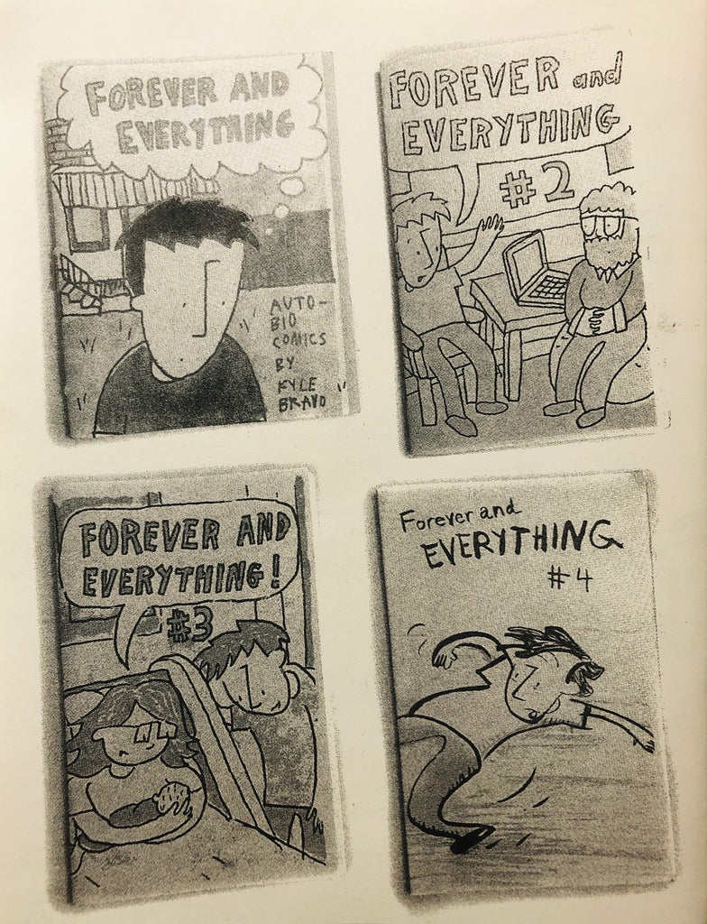 This compilation collects the first 4 issues of Kyle Bravo‘s autobio comic, Forever and Everything.