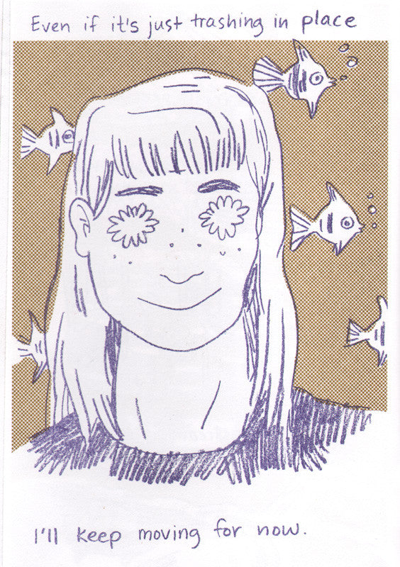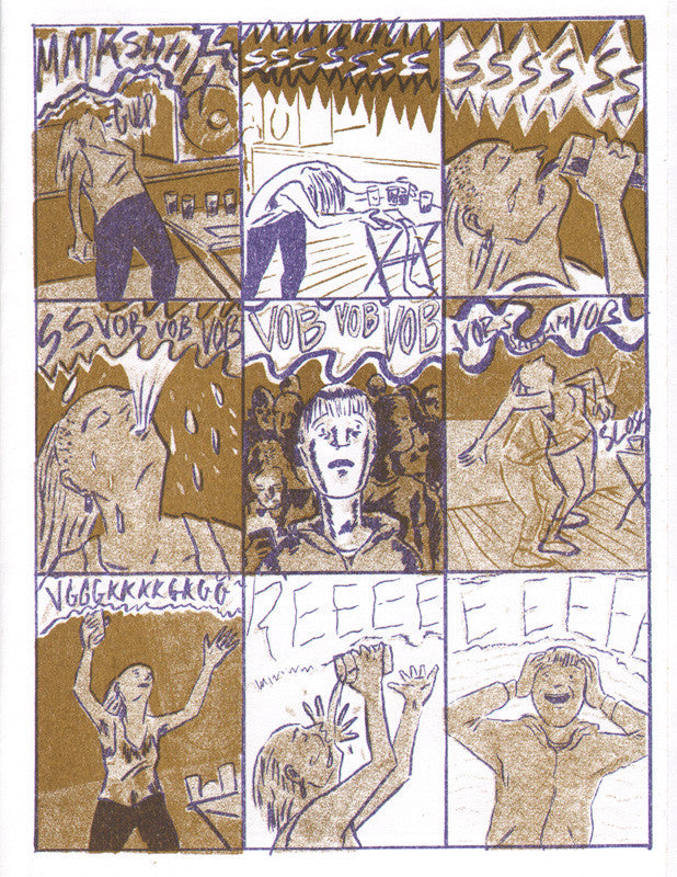 2-color (gold & purple) risograph printing. Saddle-stitched