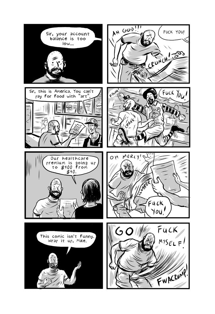 Mike Freiheit scours the past, future, space, his brain, and his close relationships looking for answers to why he seems to fuck himself over so much. Short stories woven together to illustrate a picture of self deprecation, mental instability, narcissism and acceptance. Also, it's pretty funny.