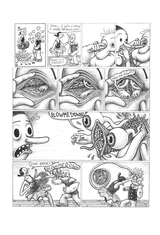 This issue features art inspired by The Phantom, Russian Prison Tattoos, Alley Oop and Popeye. Includes new Art by Ben Marra, Noah Van Sciver and a cast of international artists. Cover art by Raymond Pettibon and Josh Bayer (with Jack Mulkern & Edwin Vazquez).