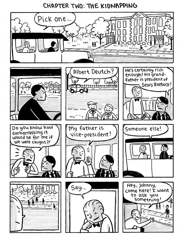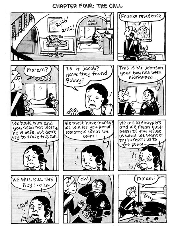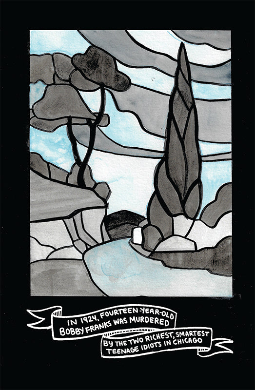 In this true crime comic The Lonely Grave of Bobby Franks, Cathy Hannah tells the story of how in 1924 the rich sons of Chicago’s elite Nathan Leopold Jr. and Richard Loeb kidnapped and murdered their neighbor 14-year old Bobby Franks.
