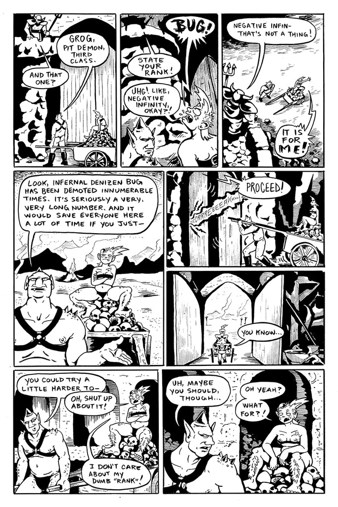 Pit demons Bug and Grog have a complicated relationship. But when Grog is summoned to the human world by an amateur sorcerer, Bug embarks on a rescue mission, determined to annihilate all obstacles—demonic or human—to save the day and win the adoration and attention of her love interest. When it comes to romance, how could grandiose gestures of violent revenge possibly go wrong?