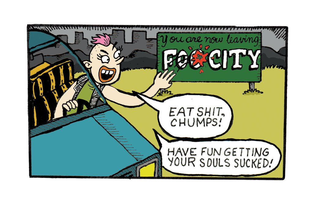 Janelle Hessig's Tales of Blarg helped define east bay punk fanzines in the '90s and beyond. Cartoonist, writer, riot grrrl muse, and one-woman laff factory, Janelle's work can be found in subversive materials hidden under your mattress or hung defiantly on your wall. She's been a touring drummer, a pop culture journalist, and the marketing director for Last Gasp. Her work has appeared in comics anthologies and on punk record covers since the beginning of time. Check out her publishing company Gimme Action for work by Liz Suburbia, Brontez Purnell, and Hessig herself.