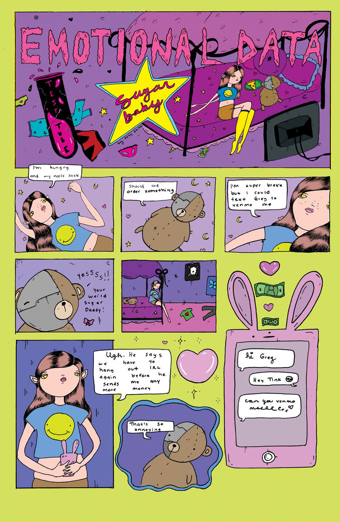 In a future still rife with apocalyptic pollution, manipulative sugar daddies, and fun slutty robots, Tink gets drunk in the shower anxiously waiting for her crush to text back. She has something to do with the space alien Jawbreaker’s plans for political upheaval and global conquest, but what? And who even cares about Earth, anyway?