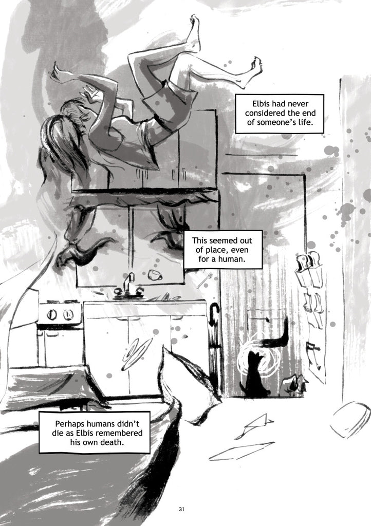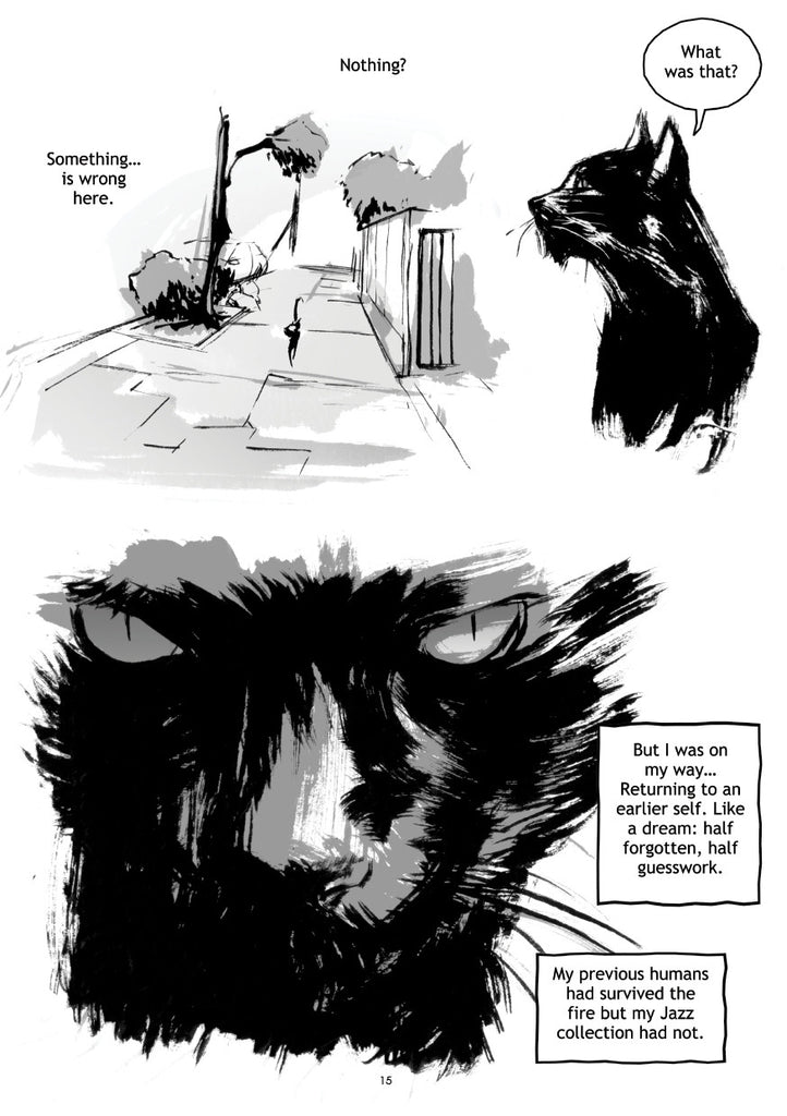 Elbis is a cat that loves listening to jazz music. After losing everything to a house fire (including his owner's jazz records) he struggles to understand the meaning of life, especially why humans seem to waste theirs even though they only have one compared to his nine.