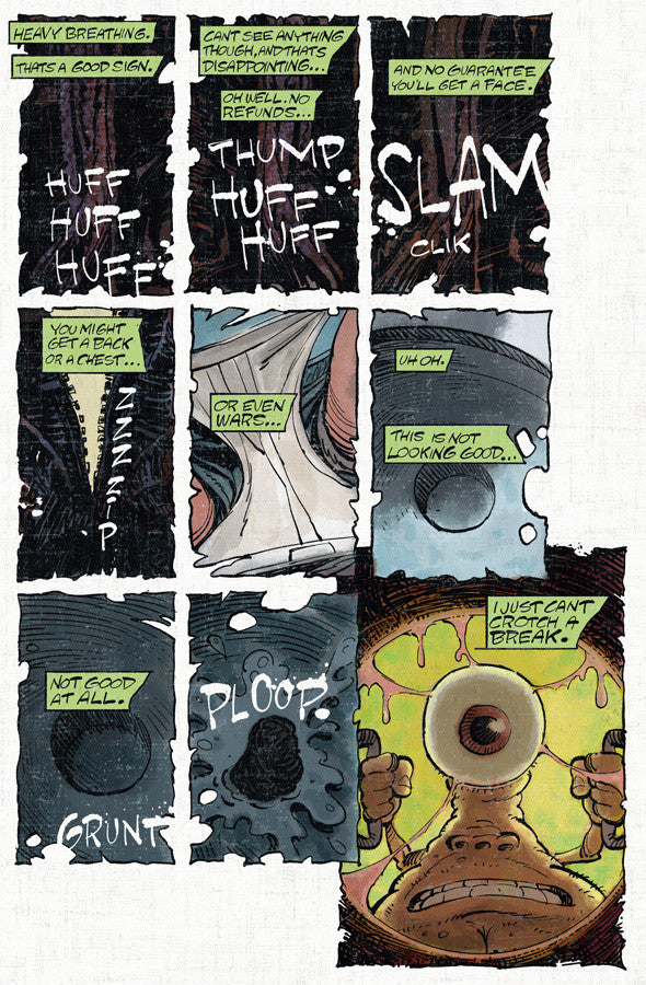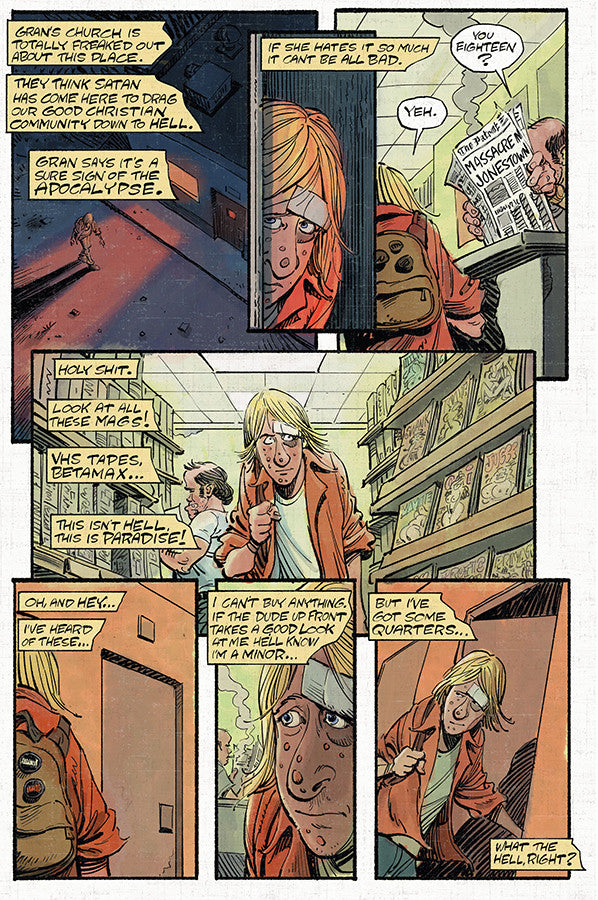 Issue #3: Adolescent emissions and suicide missions! After working his shift at a local fast food joint, Scott sneaks into an adult bookstore and discovers the joys of the peepshow booth. The alien rebels launch their attack.