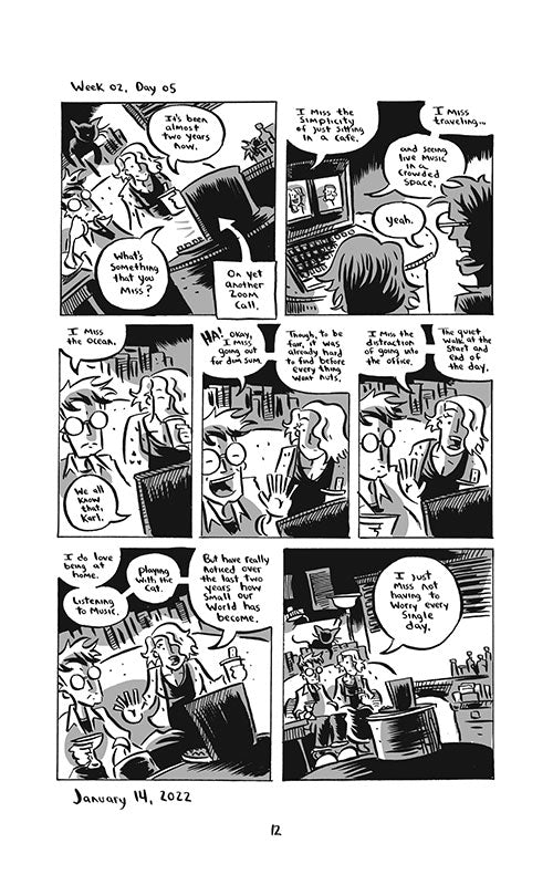 A few months before the global pandemic started, Karl Christian Krumpholz ('30 Miles of Crazy!') launched a daily diary comic to document his wife Kelly's upcoming surgery and recovery. Over two years later, Karl is still documenting their lives as the whole world recovers. In a year full of death, sickness, fear, and confusion; simply getting through a day often felt like an accomplishment. Taking the time to notice small joys in the midst of it all, and putting a period on each and every day, Karl was able to push back against the encroaching darkness and create a record of these strange times.