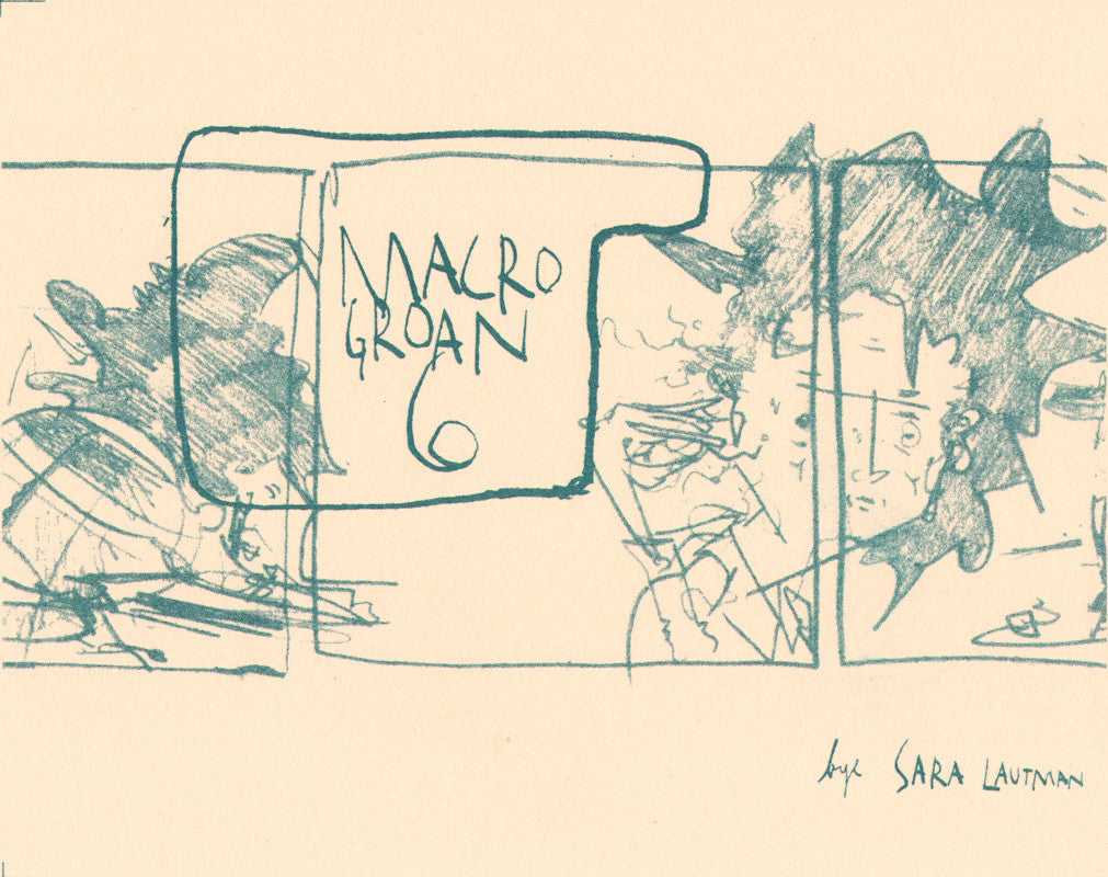 "Macrogroan 6" collects Ignatz Award nominated Sara Lautman's miscellaneous diary comics and random musings. Style and subject veer wildly from smudgy inks, watercolors & collage about a new tattoo's accidental meaning to clean but kinetic line drawings about human/animal relations.