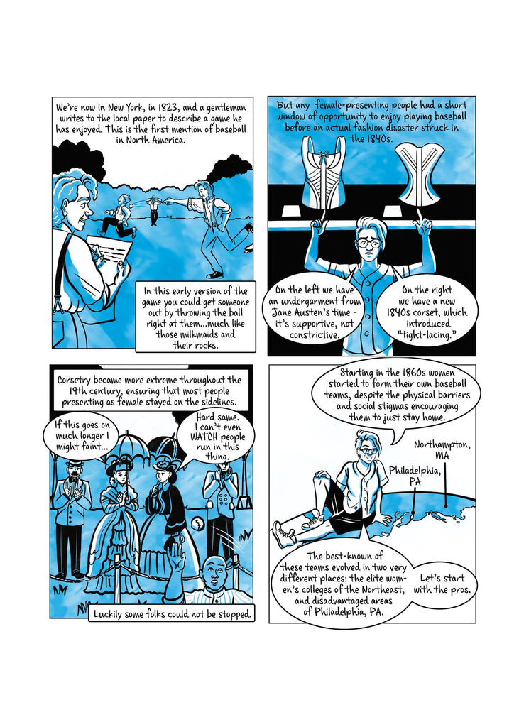 Curious about the history of baseball players who were or are *not* men? Look no further! This comic covers that history, from the 1600s to the early 1900s. Thanks to the MICE Mini-grant for making this project possible!