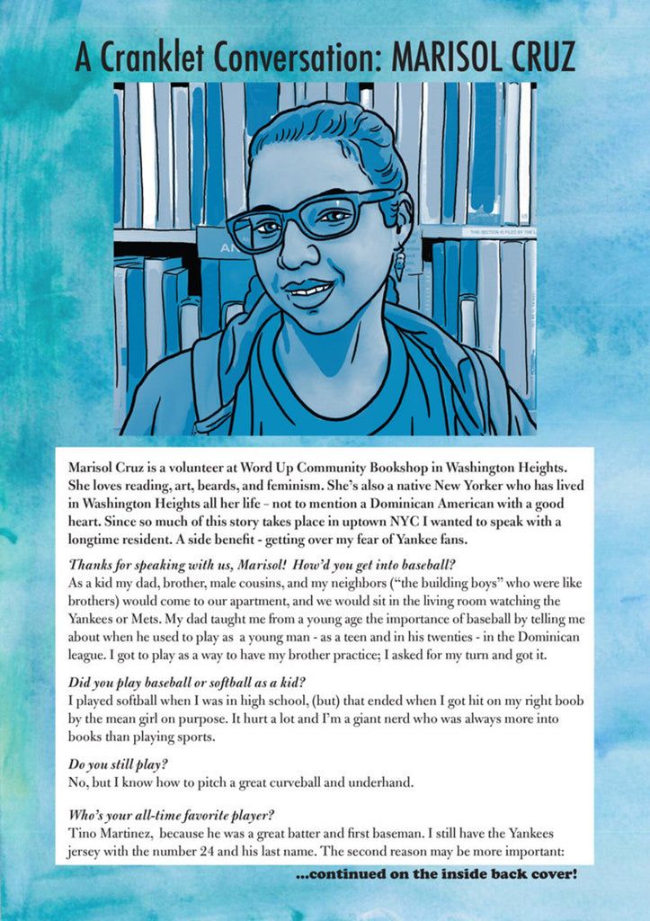 This issue also includes an interview with Marisol Cruz, who grew up in the neighborhood where the Giants once played. As a Yankees fan, Marisol has some salient words about the rivalries and drama in modern-day New York baseball.