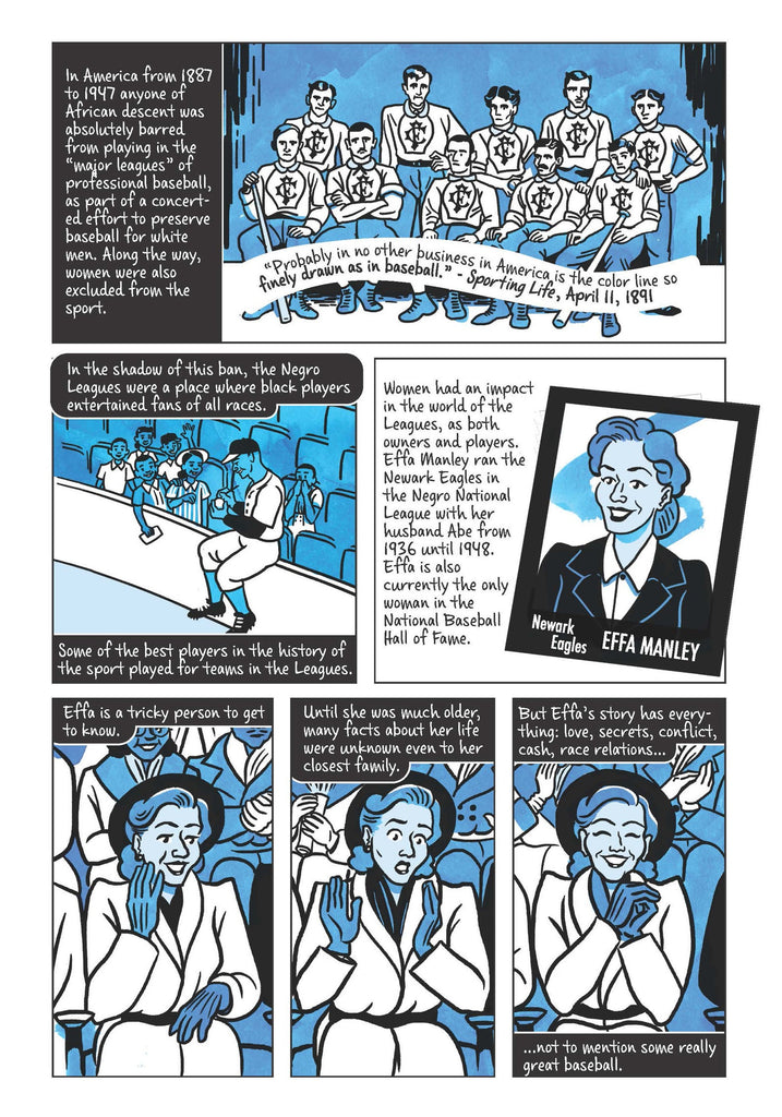 This issue includes a 20 page biography of Effa Manley, the only woman currently in the baseball Hall of Fame. Effa's story takes us back to the segregated era in baseball, when some of the greatest players ever to participate in the sport were banned from the majors. She's an author, a team manager, and a style icon - you won't want to miss this!