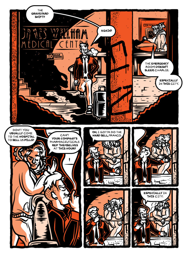 After a lengthy development process, GHOST BEACH proves to be the most exciting and ambitious instalment in the STORM CLOUDS series yet, clocking in at over 100 pages of thrilling beach town mystery, as our cast of characters all come to terms with their greatest fears. Chino, Dobson and the rest of their police friends are headed to Bontown to investigate a new party drug with sinister side effects. Jared discovers the mystery man on the train was actually the son of a local politician, and the city is in a panic to uncover what happened to him. Frankie and Charlie, while working together at the local hospital, encounter a familiar face in the emergency room. And we meet Erin Rhyse, Jared’s best friend and housemate, who is getting closer and closer to unravelling this entire mess. Is Jared still the target of The Party, after their chance encounter in the last comic? Is Chino ready to return to Bontown, after leaving it all behind? Why does everyone call it Ghost Beach? Be the first to find out, this Winter in Bontown!