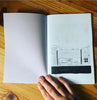 B+W on light purple covers with b+w on white interior. Saddle-stitched