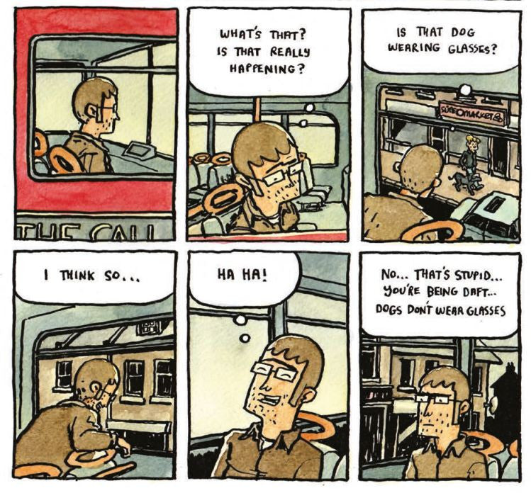 A grand existential crisis, a surreal Bulgakovian satire, or simply a quiet disaster? We follow Philip on his day off work as he struggles to find meaning and happiness through the everyday decisions that make up a day. Why did he cross that street? Does he keep walking, or shelter from the rain? What will make him happy? And just why is that dog wearing glasses?