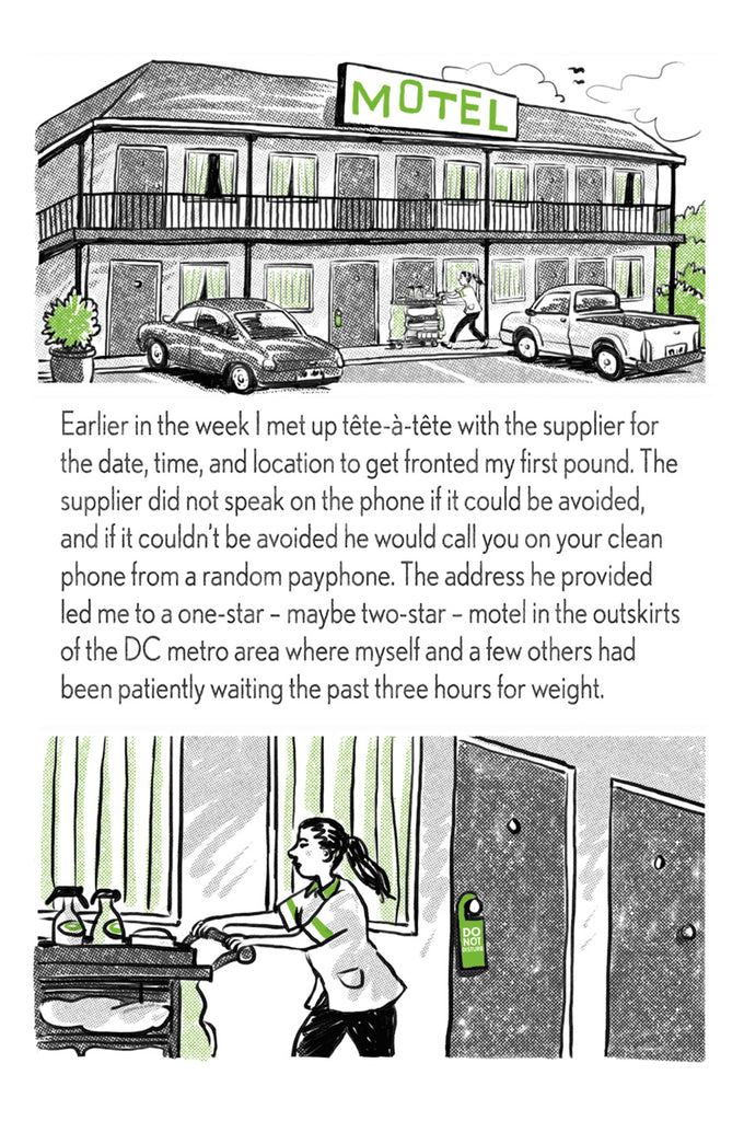Now that Chad has made the decision to sell weed, he has to actually go and get it. The finer details of ascertaining and transporting a pound of kind bud in the year 2004 are revealed in this second issue of The Re-Up.
