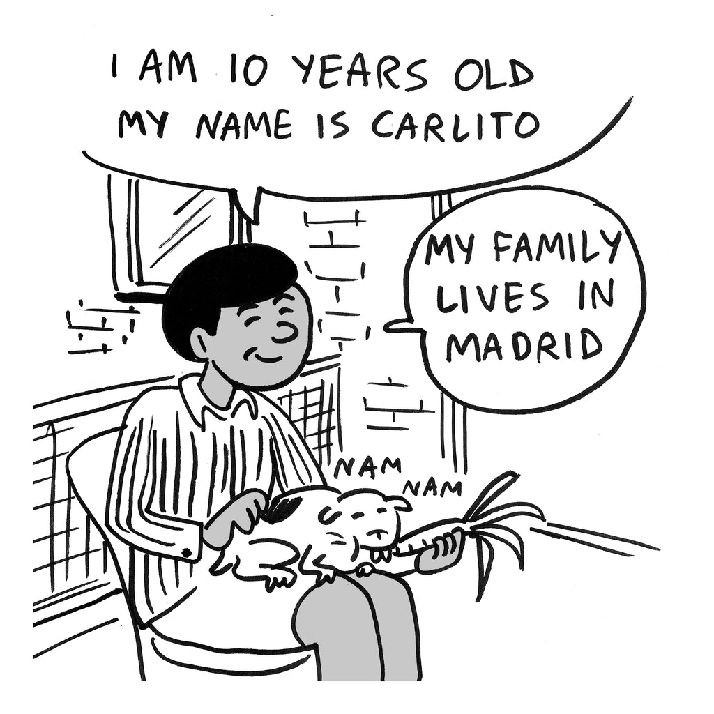 Carlito is a ten-year-old boy from Peru who is growing up in Spain. He likes reading European comics and watching American cartoons. He also likes Juan, a boy from his judo class, but that's a secret. Over the next eight years, his family moves from Spain to Peru, and then to America. Adjusting to a new life in a new country can be difficult, but Carlito meets each change with optimism and an open heart.