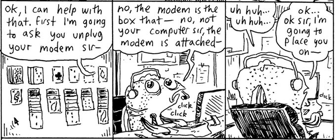 - K. Trout Makes a Move by Sam Spina - Ending this issue is this great four-pager from Sam Spina. Kilgore has worked with Sam a lot, and they've always said he's one of the nicest guys in comics. Well, he's also one of the funniest, and his time at the Cartoon Networks, 'The Regular Show' has really helped him fine-tune his gag writing ability.