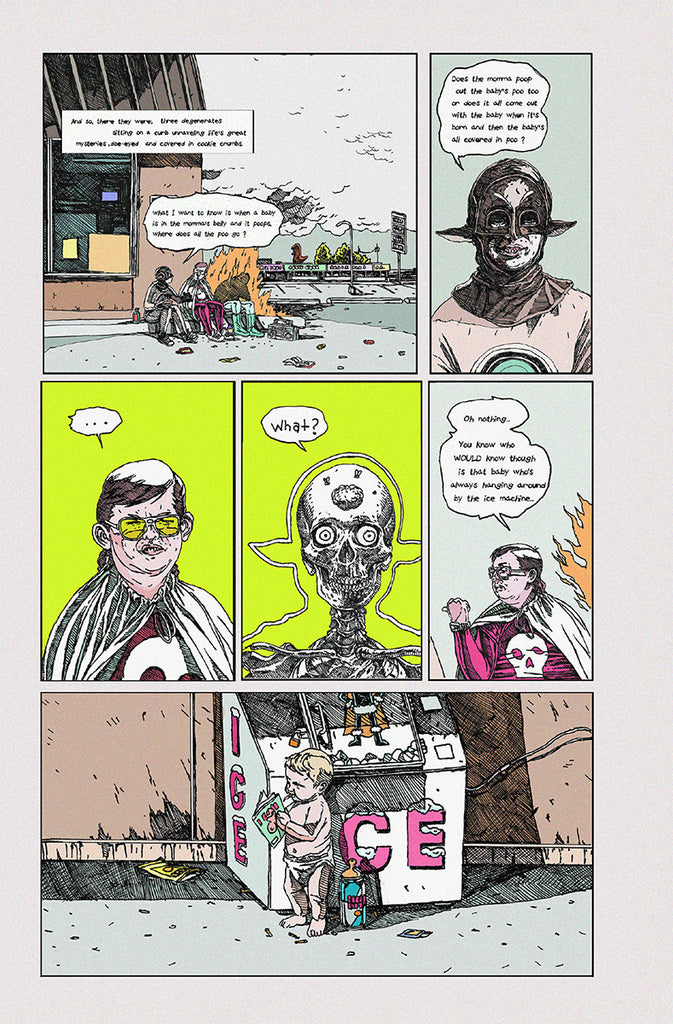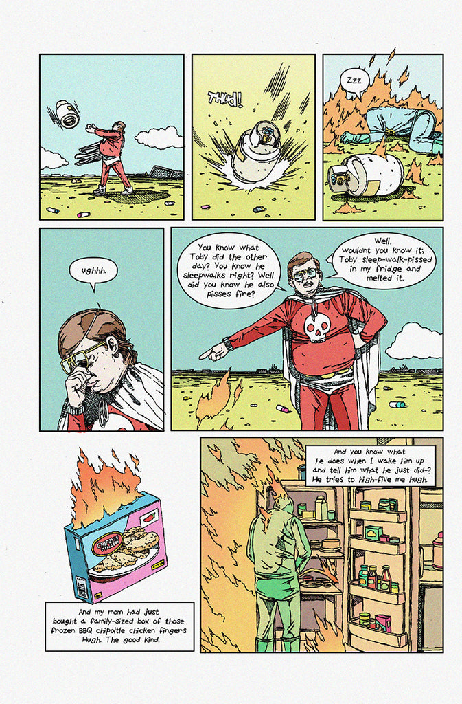 Everything is Super follows the misadventures of Lloyd the Human Hemorrhoid Herman as he stumbles through contemporary life in a dead end, backwater superhero town. Volume one collects issues one through four. Recommended for mature audiences.