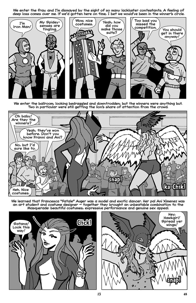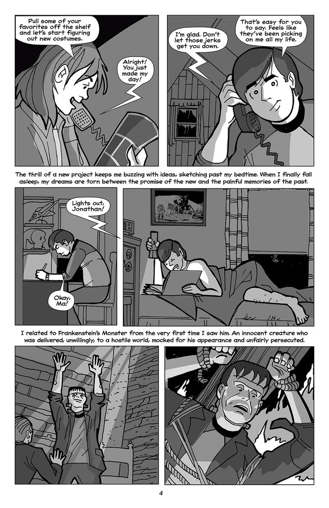 A continuing graphic memoir of adventures in the early fan scene of the Seventies. In this issue, Jonny and his friends face taunting from their fellow students in high school with nightmarish results. They embark on even more challenging costumes for the 1975 Comic Art Convention, leading to a run in with New York’s Finest, and a fateful meeting with a pair of cunning competitors.