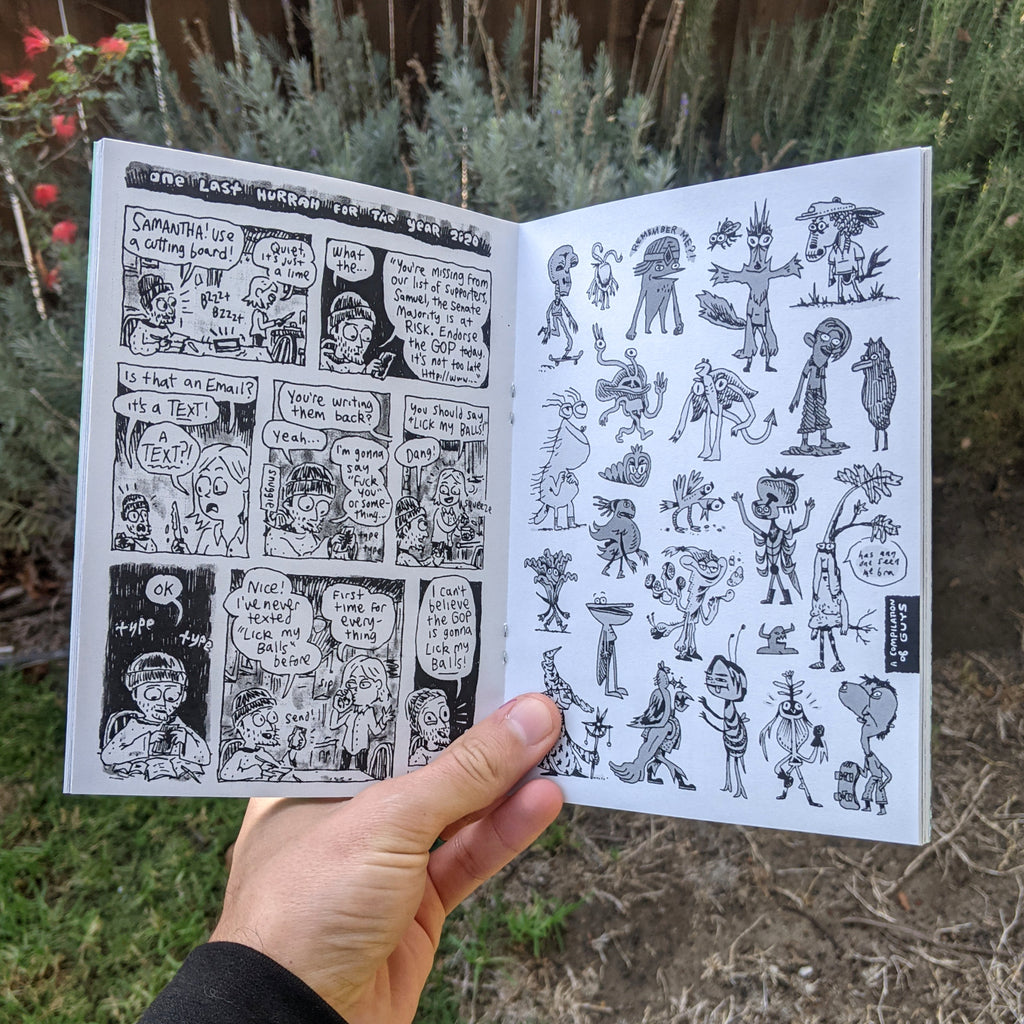 A light and breezy collection of mostly unseen auto-bio sketchbook comics and other sketchbook drawings that I made in 2019-2021 starring me, my wife Samantha, and our cat Sugar Cookie. Domesticity never looked this good!