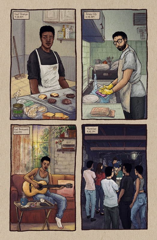 In A Rut Comics: Issue 3 is a standalone issue of the series. Issue 3 focuses on the different lives of three characters living in New Jersey. This issue is a slice-of-life story with panels capturing the local New Jersey punk scene and regular hangouts, such as punk dive bars, basement venues and other loved New Jersey spots.