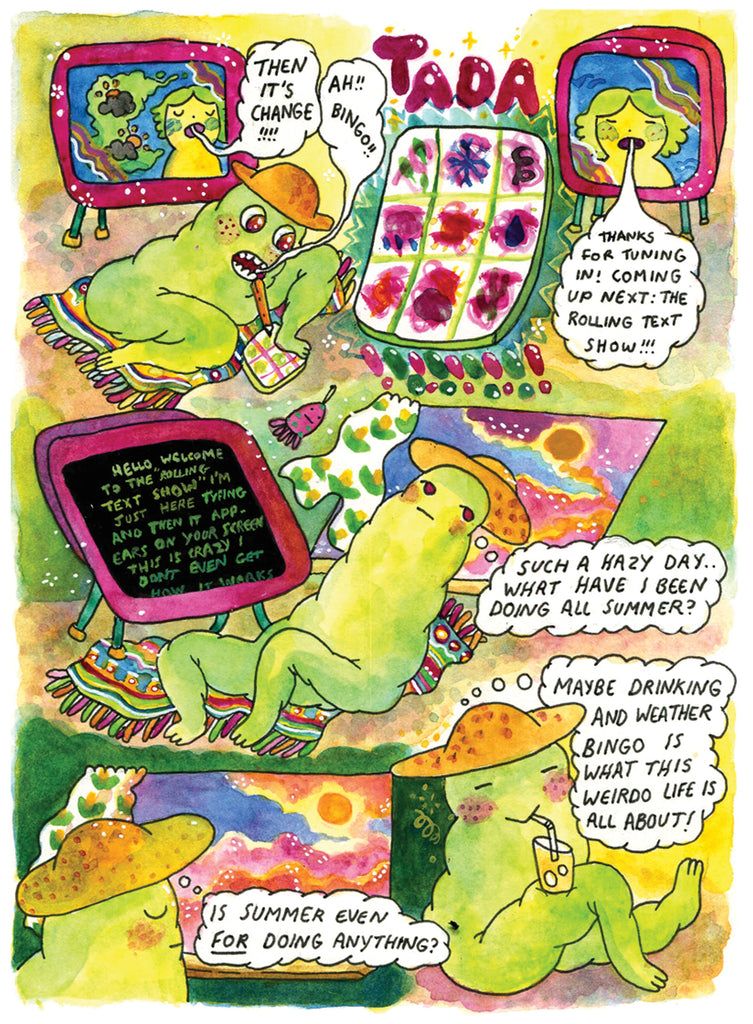 Becca Tobin is a cartoonist and artist living in London UK. They have published comics with Hazlitt, Youth In Decline, Pitchfork, Lucky Peach and BOOM! Studios among others. Fav foods include spaghetti, bland crisps and salt.
