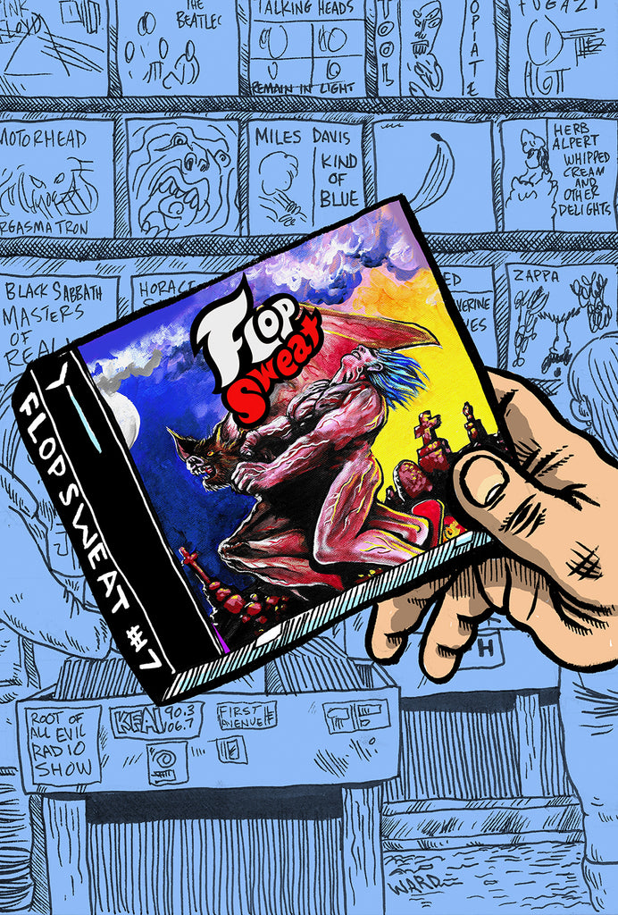 Flop Sweat is an ongoing serialization of Lance Ward’s autobiographical comics arranged chronologically. Previous self-published collections of these comics were featured in The Best American Comics. Ward’s life has been rife with pitfalls: abandonment, addiction, mental illness, sexual assault, arrest, attempted suicide, and even a death experience (not “near-death”, he was clinically deceased!). Yet, through it all he has somehow maintained a positivity about and loyalty to his art, even after crushing his drawing hand!