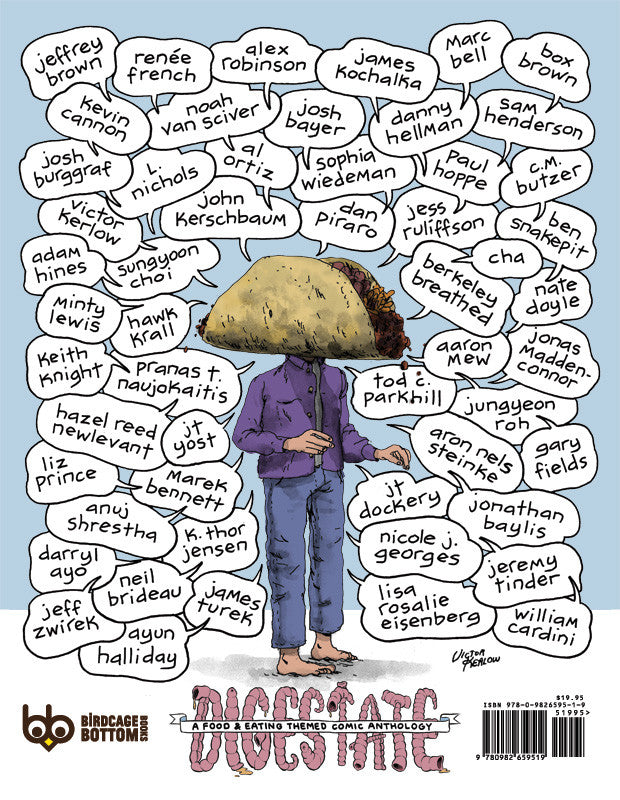 Over 50 indie comic artists contribute their interpretations of the theme "food and eating" in this gigantic telephone-book sized anthology. A wide range of subject and tone including autobio, fiction, nonfiction and essays (and everything in-between).