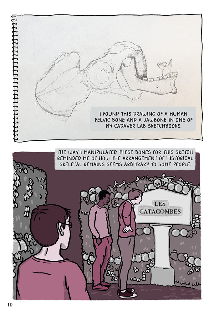 I teach a drawing class in a cadaver lab. The sketches I draw from this dream job plus 20 more years of drawing bodies and anatomy have inspired me to make Cadaver Chronicles, a philosophical, occasionally explicit, and sometimes poignant and funny graphic memoir about childhood, anatomy, death, dying, healthcare, art, food, and relationships. These episodes are a preview of the novel-to-be! I have a long history with anatomy studies and health sciences. For me, every living creature has an anatomical identity. So much so that anatomy is not only an area of scientific knowledge and technical specificity, it’s a lifestyle!
