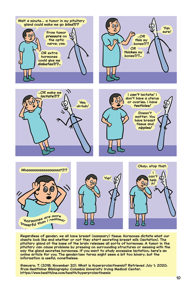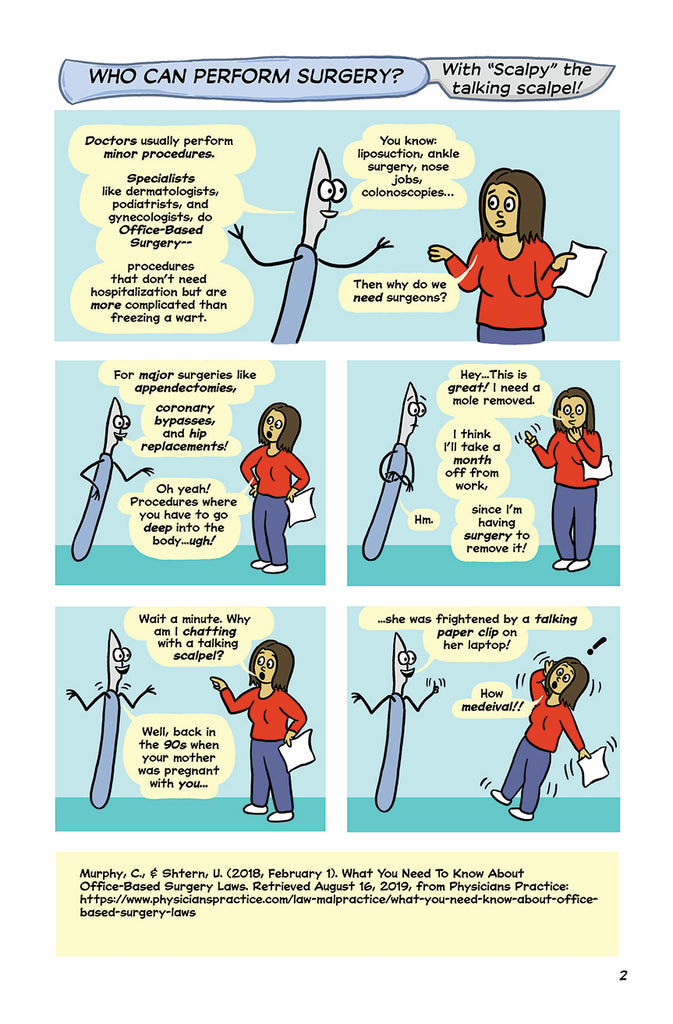 The jokes in this comic are the result of years of emersion in the world of surgery as an artist, massage therapist, an educator, and a patient. Each page of medical humor contains a footnote about the topic of the joke and a citation in case you’d like to do some research, yourself.