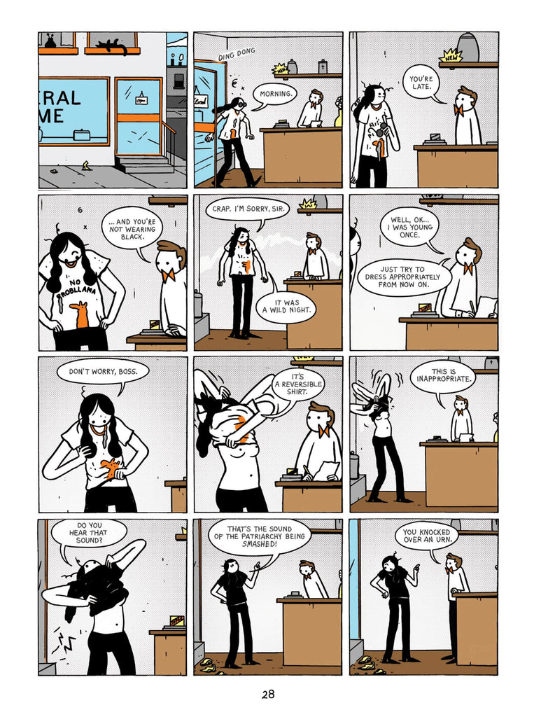 Fungirl is a hapless (hopeless) hot mess of a woman crashing through life, leaving chaos in her wake. Although her oblivious antics infuriate her roommate-slash-ex-girlfriend, terrify the teenage skaters she tries to impress, and threaten her every opportunity for employment, Fungirl remains charming, transgressive, and hilarious.