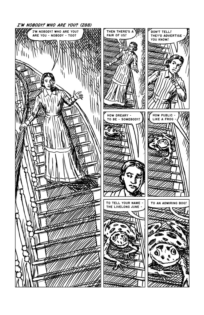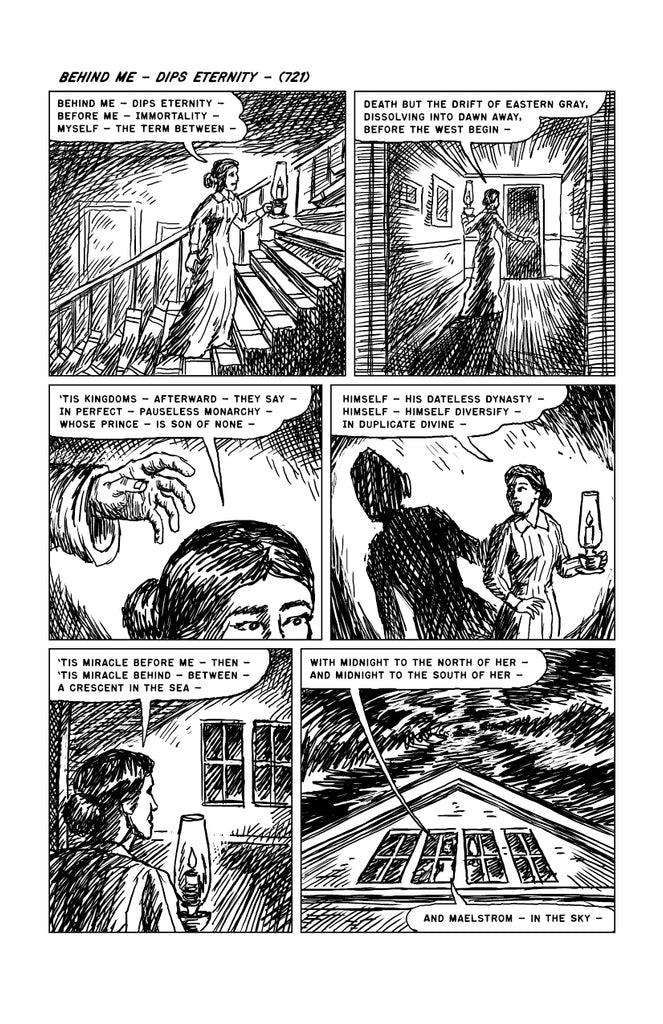 This mini combines the poetry of Emily Dickinson with the atmosphere of 1950’s horror comics. A follow-up to the minis “Whitman,” “Poet Poe,” and “Catullus the Poet,” also drawn by R. Sikoryak, the cartoonist behind Masterpiece Comics, Terms and Conditions, and The Unquotable Trump.