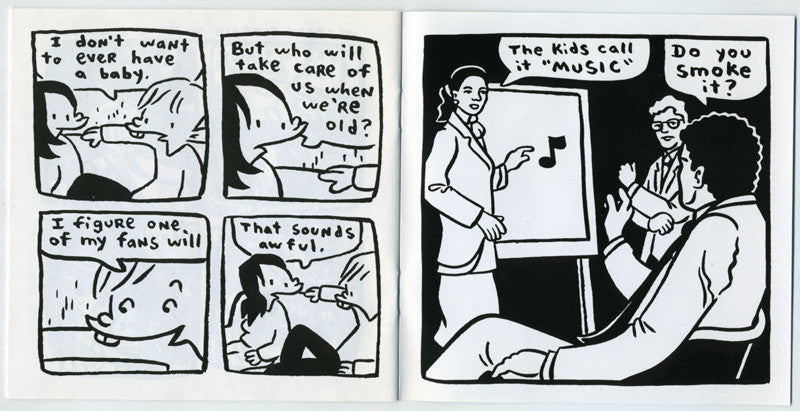 The long out-of-print lost album by James Kochalka Superstar! But we still have a few hidden away. The comic is made of excerpts from the American Elf diary strip, mostly pertaining to working on the album. 23 amazing songs including Turn Down the Stereo, Don't Trust Whitey, Copenhagen China Box, Pussy Gangster, Talk to the Wookie, Silly Lily Pond, Neigh-neigh & Woo-woo, Amthsterdam!, Frog on Top of a Skyscraper, Smells like James Kochalka, Even the Clouds Get High, Corn on the Cob, Sleighride to Heck, Toast, Smile, Ozzy & I, Miniature Stairway to Heaven, Hello Computer, Woo-woo & Neigh-neigh, Saving my Strength, Bat Man Bud Light, Cutie, and Vermonter.