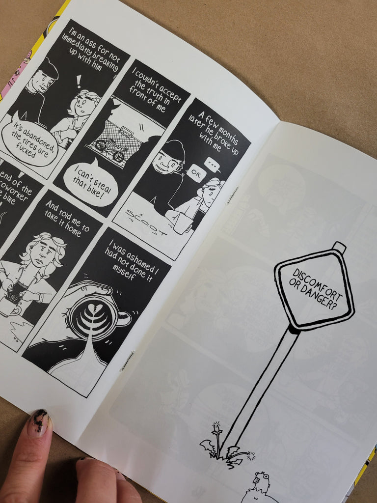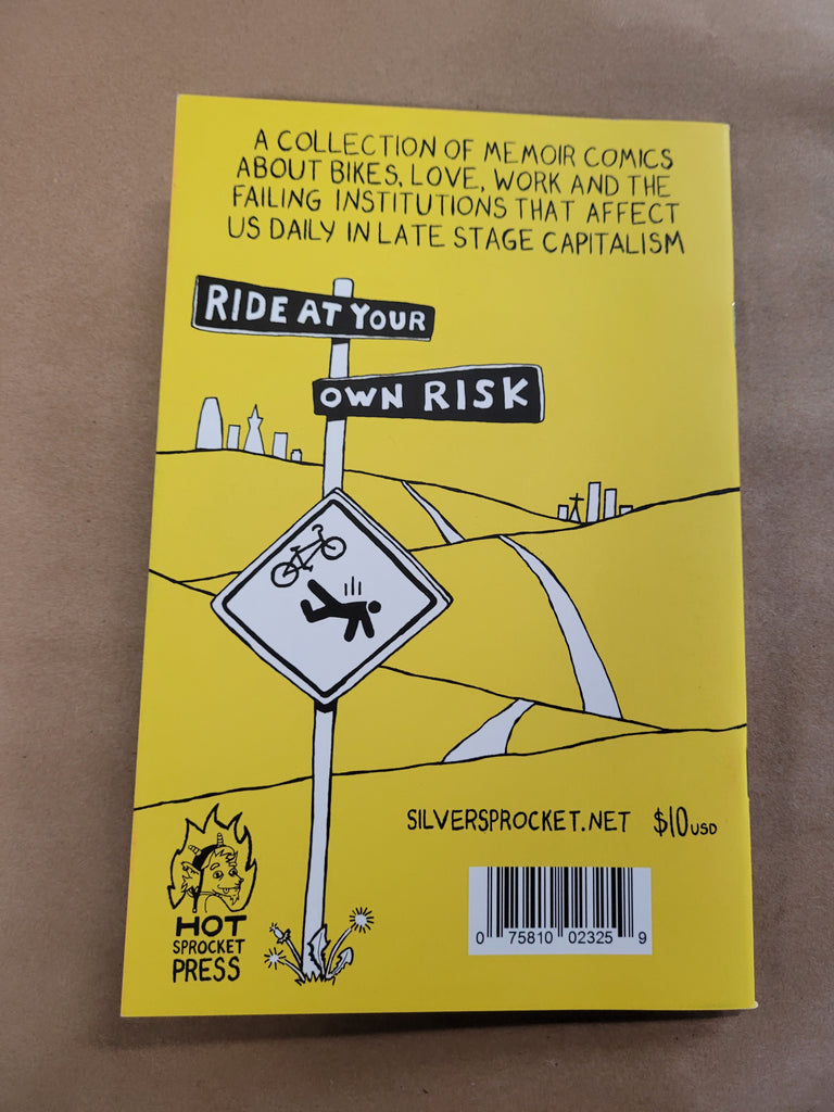 A collection of memoir comics about bikes, love, work and the failing institutions that affect us daily in late stage capitalism. Published by Hot Sprocket Press.