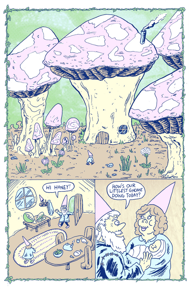 Beginning the serial fantasy wizard story, Gorb Lorbin. Also features the short horror story, Summer of '93, and a 12 page wordless monster comic, Quotidian.