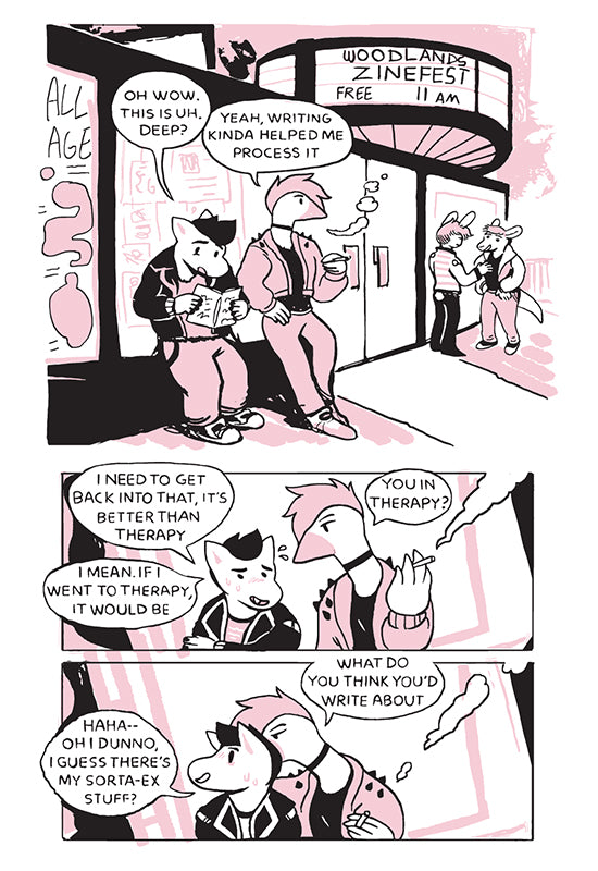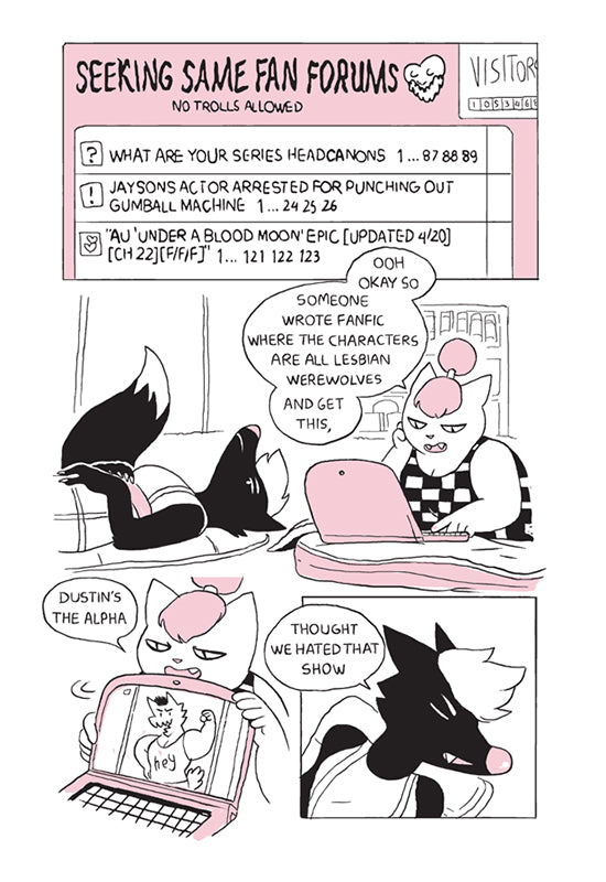 Little Teeth is a hilarious and achingly real dip into the lives that make up a particular queer community. Jae Bearhat and Rory Frances expertly depict a snapshot of a generation.A fox girl and wolf boy anchor this collection of stories about a tightly knit yet emotionally chaotic queer community of the fictional Pacific-Northwest city of Woodlands.