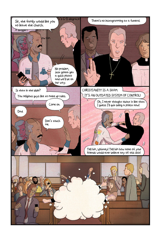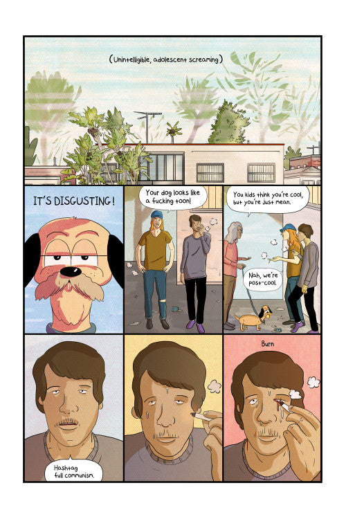 Ignatz-nominated cartoonist Pete Toms deftly combines the driest of dry humor and off the rails absurdity in this full-color tale of conspiracy theories, mental illness, text messages, and spending quality time with one’s family.