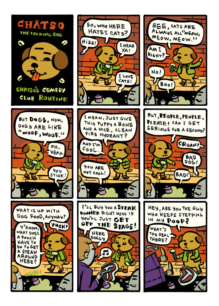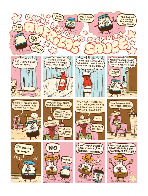 Featuring roving gangs of drug-addled rabbits, Guns N' Roses in their Jewish deli days, ghost stories and talking dogs with nothing to say, Butter and Blood is packed cover-to-cover with beautiful drawing, dumb ideas and funny, funny jokes.