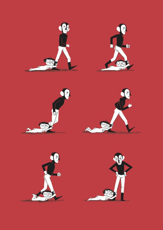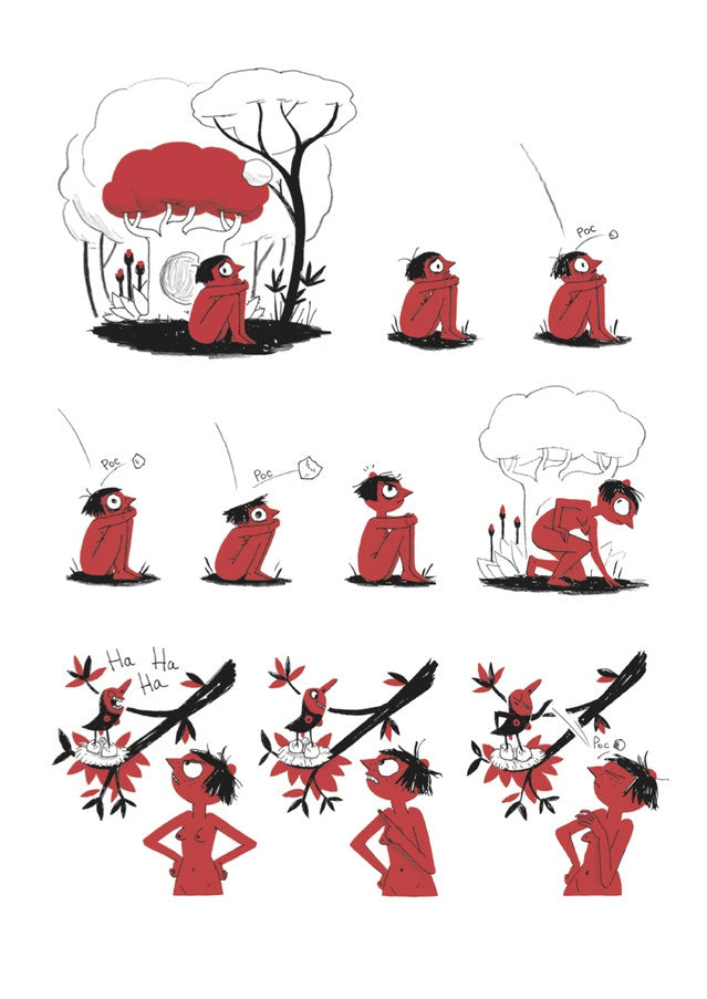 At the edge of a magical wood, a little girl named Canopy grows up with her family. When she is grown her mother makes her venture into the dark forest on her own, where she encounters a loving ogre, sirens, and a man without a face... all while trying to discover herself and grow into a woman. Interspersed with stories of her relationship with her father, Canopy is a fantastic fable told with Karine Bernadou's amazing cartoon pantomime style.