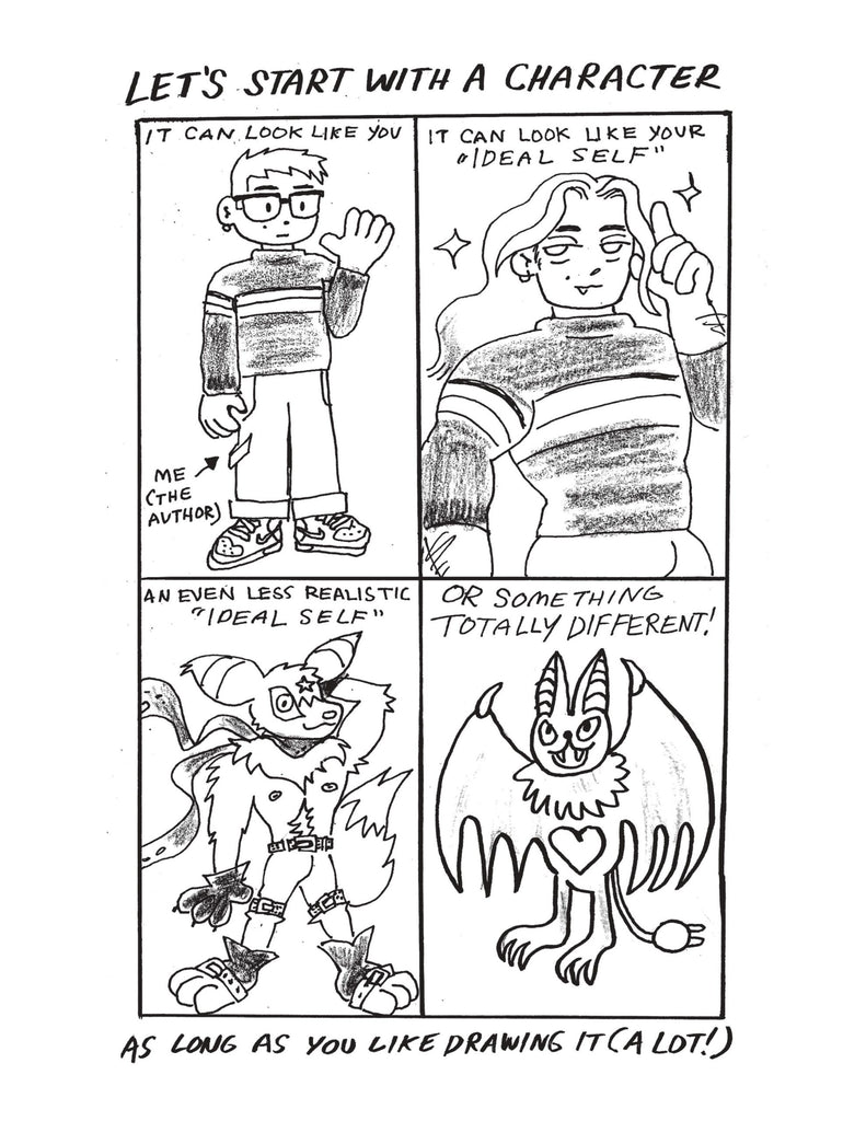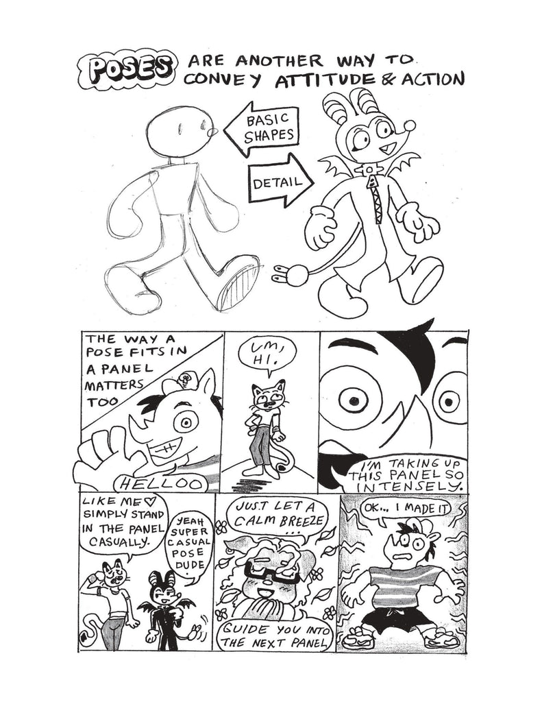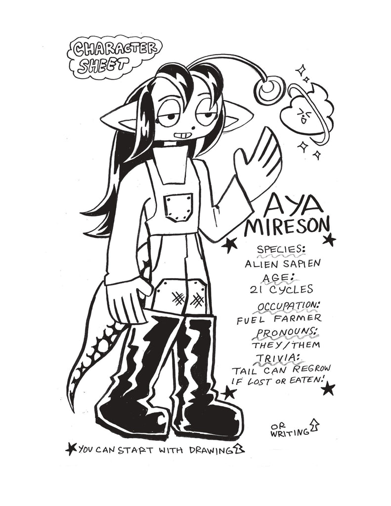 A friendly, easy-to-understand explainer for making comic zines from comics educator Eddy Atoms! Appropriate for kids to adults, this guide shows you the basic steps for creating your very own comic, from brainstorming and character design to layouts and production. Grab some paper, some pens, a stapler, and have fun!
